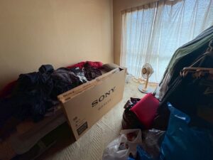 その為、作業前に、お引越しに持っていく家財をベランダと2部屋の奥のスペースに移動・まとめて置いて、その他は処分するお荷物ということでお客様としっかりと確認してから、作業を開始しました。